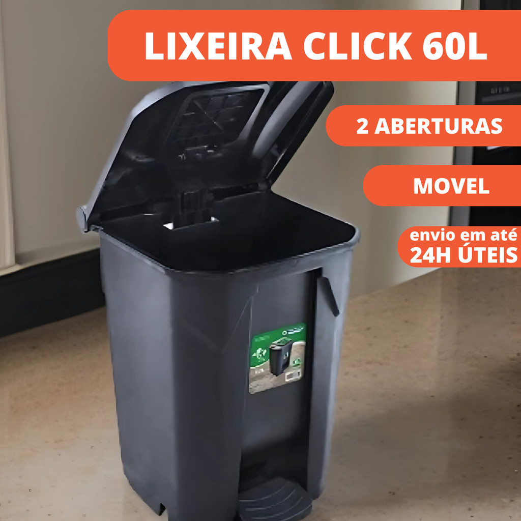 Kit 3 lixeiras Preta 60L de Lixo Grande Tampa Pedal Click aparece na subcategoria Lixos e Lixeiras (de Casa e Construção) na Shopee Brasil por R$ 259,90 (53% de desconto sobre o preço original de R$ 552,98). Avaliado em 4.8/5 pelos compradores e 24 unidades vendidas, este produto se destaca pelo excelente custo-benefício.