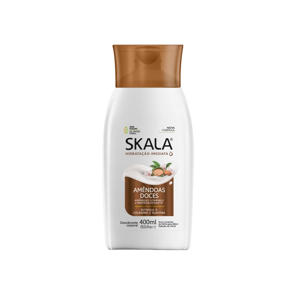 Oii, é um prazer ter você aqui! Já pensou em cuidar da pele diariamente com uma dose extra de hidratação e suavidade? Com o Kit 03 Loção Creme Hidratante Corporal Amêndoas Doces Skala, você garante pele macia e perfumada todos os dias, ideal para quem busca praticidade, qualidade e economia. Descubra tudo o que esse kit pode oferecer! O que é: - Marca: Skala. - 03 Loção creme hidratante corporal amêndoas doces 400ml. - Fragrância: Amêndoas doces. - Vegano. O que tem: - Amêndoas. - Vitamina E. - Manteiga de karité. O que faz: - Estimula o colágeno e a elastina. - Hidratação. - Desodorante corporal. Indicado para: - Todos os tipos de pele. Como usar: - Limpe a pele e seque. - Aplique uma quantidade fazendo movimentos circulares. - Deixe a pele absorver o produto. - Use diariamente. Precauções de uso: - Evite excesso. - Deixe secar completamente o produto. - Não ingerir. Com o Kit 03 Loção Creme Hidratante Corporal Amêndoas Doces Skala, você garante não só uma pele bem cuidada, mas também um toque irresistível de maciez e perfume. Aproveite para manter seu estoque de hidratação e garantir um toque de cuidado especial todos os dias! Surgiu alguma dúvida? Entre em contato com a gente! Boas Compras :)