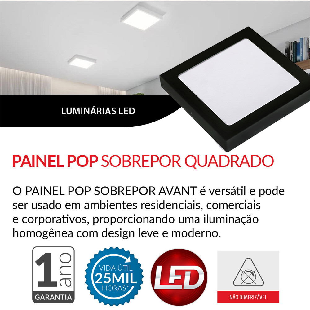 Kit 3 Luminaria de Teto Painel Plafon 24w Sobrepor Luz Branco Frio 6500k 127v 220v Avant