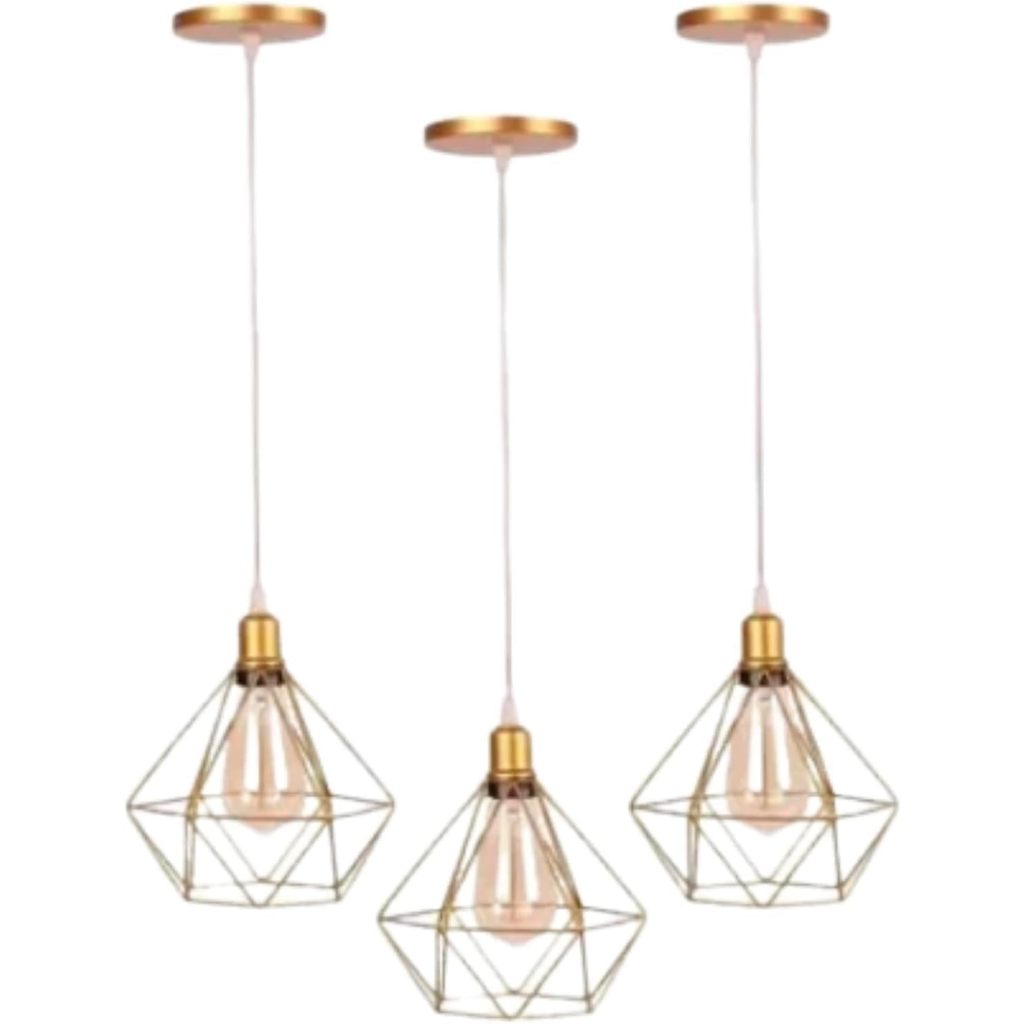 kit 3 Luminaria Pendente Diamante Aramado Rose Gold Cabo Cristal