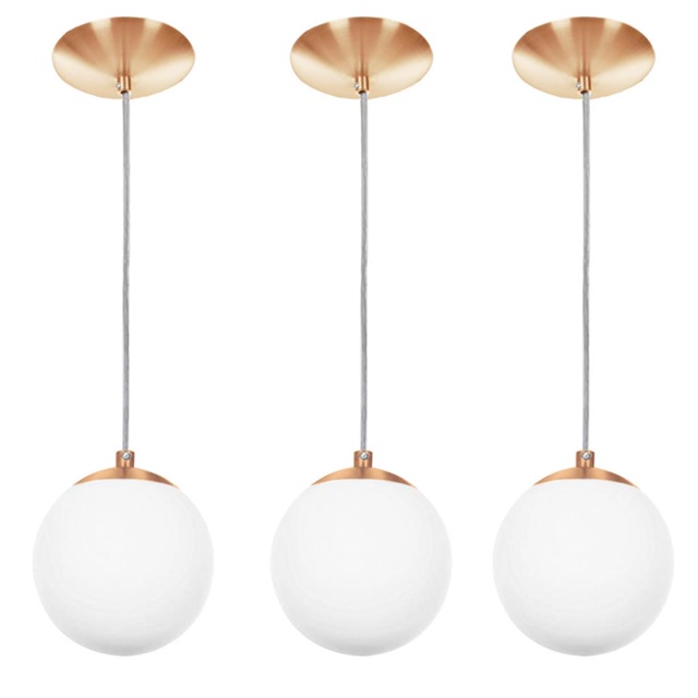 kit 3 Lustres Pendentes Orby Bolinha New Cobre