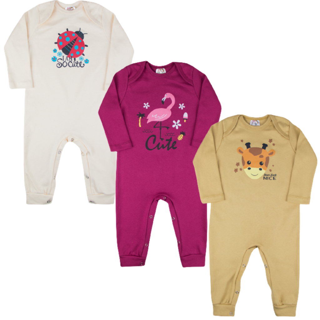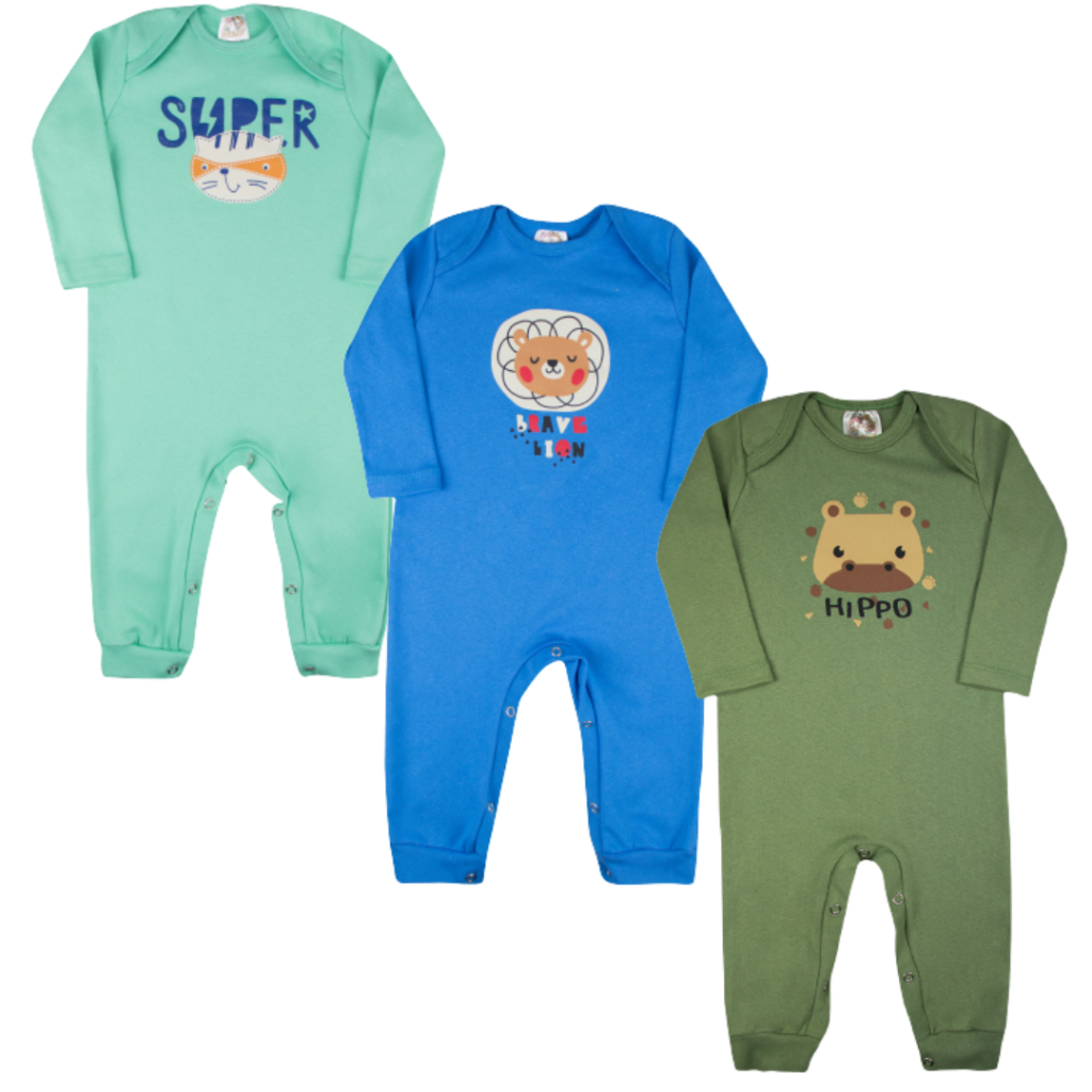 Kit 3 Macacão Bebê Infantil Algodão Manga Longa Menino Ou Menina Sortidos