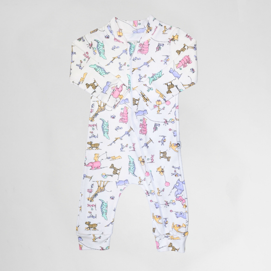 Kit 3 Macacão Lilobu Bebê Antialérgico 100% Algodão RN ao GG Manga Longa Zíper Liso e Estampado 24007-K3