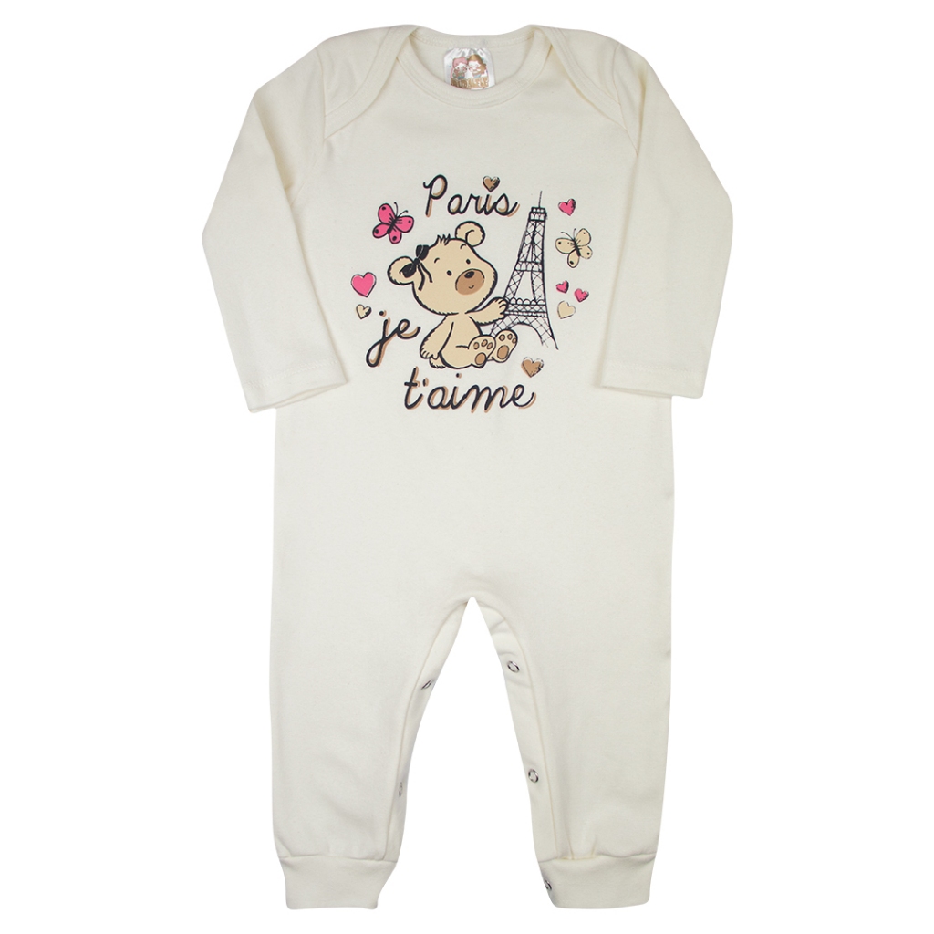 Kit 3 Macacão Longo Bebê Algodão com Botões Menina Menino Enxoval Maternidade Roupa de Bebê