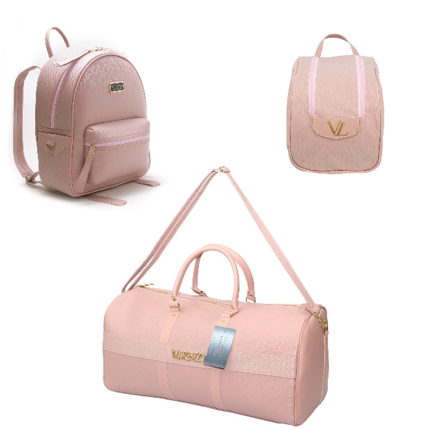 Kit 3 Mala + Necessaire + Mochila Rosa Casual Viagem Passeio