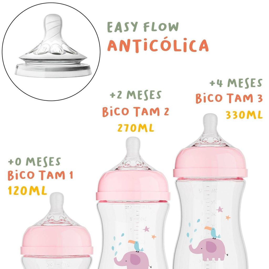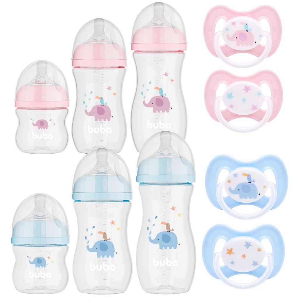 KIT 5 EM 1 Buba Amamentação com 3 Mamadeiras Buba 120ML, 270ML E 330ML + 2 Chupetas Buba Tamanho 1 0-6 meses. O Kit 3 Mamadeiras Easy Flow Nuvem da Buba é a solução completa para quem quer oferecer ao bebê uma alimentação mais tranquila, segura e com muito conforto. Com visual delicado, inspirado em nuvens, este kit acompanha o crescimento da criança com três tamanhos diferentes de mamadeira, cada uma pensada para uma fase específica. Os bicos de silicone macios e o sistema Easy Flow ajudam a tornar a mamada mais natural e confortável, além de colaborar na prevenção de cólicas e engasgos, dando mais tranquilidade aos pais. Um kit versátil que combina design, segurança e praticidade para o dia a dia. BENEFÍCIOS E QUALIDADES Bicos macios de silicone com sistema Easy Flow, que ajudam a evitar cólicas e engasgos. Produzidas em material livre de BPA, para uso seguro do bebê. Três tamanhos diferentes, ideais para acompanhar fases distintas do bebê. Design delicado com tema Nuvem, visual moderno e atraente. Redução de vazamentos e mais praticidade no transporte e uso externo. Facilidade de limpeza e manutenção para uso diário. ESPECIFICAÇÕES TÉCNICAS MAMADEIRAS: Mamadeiras Easy Flow Nuvem Buba Material: Plástico para corpo + silicone no bico. Capacidades e tamanhos: 1 mamadeira 120 ml – para fases iniciais. 1 mamadeira 270 ml – para fases intermediárias. 1 mamadeira 330 ml – para fases mais avançadas. Bico: Silicone macio com sistema Easy Flow, voltado a menor desconforto e prevenção de cólicas. Livre de BPA: Sim ESPECIFICAÇÕES CHUPETAS Linha: Comfort Idade recomendada: a partir de 6 meses Tamanho: 1 Bico simétrico em silicone ultra soft Com ventilação lateral Livre de BPA (BPA Free) Produto leve, anatômico e seguro ITENS INCLUSOS 01 Mamadeira Buba Easy Flow Nuvem – 120 ml 01 Mamadeira Buba Easy Flow Nuvem – 270 ml 01 Mamadeira Buba Flow Nuvem – 330 ml 02 Chupetas Buba Tamanho 1 (0 a 6 meses)