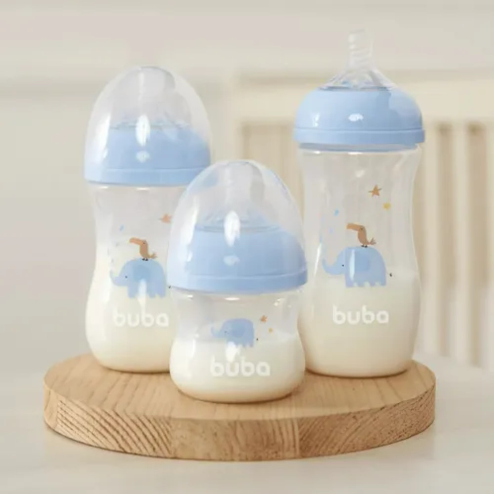 KIT 3 MAMADEIRAS EASY FLOW ELEFANTE AZUL 120ml, 270ml, e 330ml - BUBA