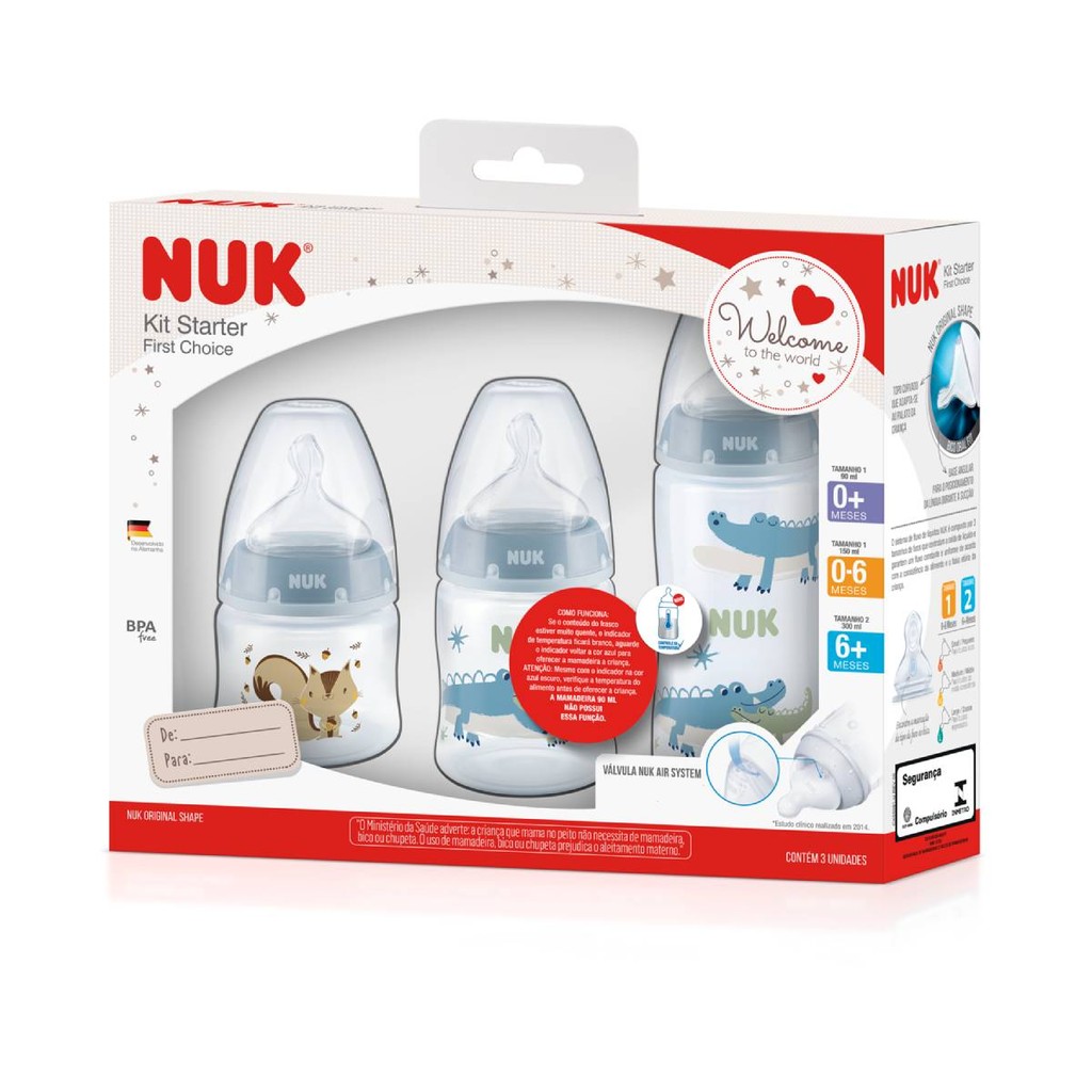 Kit 3 Mamadeiras Starter Azul 90/150/300ml First Choice - NUK