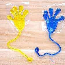 Mãozinhas que grudam na parede tipo geleca. Descrição: Tamanho: Somente da mão: 7,5 cm Tamanho extensão total 17,5 cm Quando em movimento e esticado pode chegar a 50 cm. Produto atóxico; Para crianças a partir de 3 anos. Consistência mais grossa e firme que o slime. Não desmancha. Lavável. Diversão garantida para as crianças. Quantidade: 3 unidades