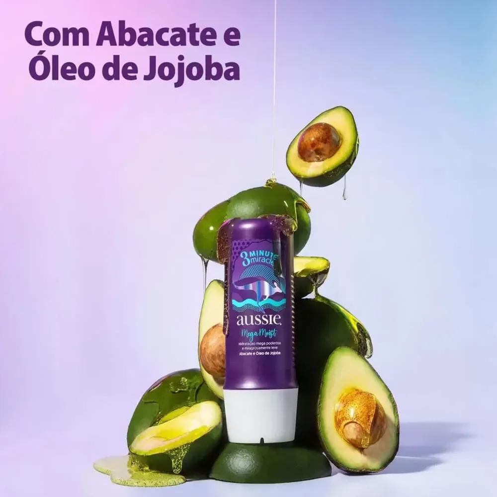 A Máscara Capilar De Tratamento Aussie Mega Moist Super Hidratação 3 Minutos é especialmente indicada para cabelos secos e opacos. Proporciona hidratação profundamente da fibra capilar, repondo água e nutrientes que o seu cabelo precisa para ficar super hidratado e soltinho, sem pesar na raiz. Possui fórmula enriquecida com abacate e óleo de jojoba, ativos altamente poderosos para o tratamento intensivo dos fios. Além disso, é 100% livre de sulfato, parabenos e petrolatos. O Kit contém: - 3 Máscaras de 236ml. Benefícios: - Hidrata os fios sem pesar; - Recupera os cabelos secos e opacos; - Tratamento instantâneo e intensivo; - Vegano e Cruelty Free. Modo de usar: Aplique o produto sobre os fios úmidos, deixe agir por 3 minutos e enxágue. Em seguida, aplique o Condicionador para selar as cutículas e enxágue. Seque bem o cabelo com secador para obter um efeito ainda mais alinhado dos fios. Finalize com uso da prancha, se desejar. Sobre a marca: A Aussie é uma marca de origem Australiana, fundada em 1979 pelo empresário Tom Redmont. A marca é especializada na produção e venda de cosméticos de ponta para o cabelo, concebida para clientes de todas as idades.