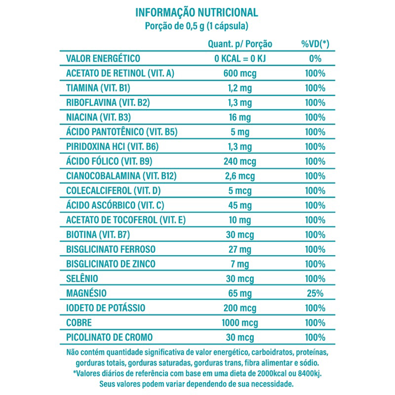 Mater Vitamina para Gestante Materna 500mg - 60 Cápsulas - Natunéctar O Mater Vitamina para Gestante Materna da Natunéctar é um suplemento especialmente formulado para atender às necessidades nutricionais das gestantes, garantindo saúde e bem-estar tanto para a mãe quanto para o bebê. Com 500mg por cápsula, este produto oferece uma combinação equilibrada de nutrientes essenciais para essa fase tão importante. Benefícios: Formação do Tubo Neural do Feto: Auxilia no desenvolvimento saudável do tubo neural do feto, fundamental para o crescimento do sistema nervoso central durante a gravidez. Formação de Ossos e Dentes: Contribui para a formação e fortalecimento dos ossos e dentes do bebê, além de apoiar a saúde óssea da mãe. Funcionamento do Sistema Imune: Ajuda a fortalecer as defesas naturais do organismo, promovendo a saúde da mãe e do bebê. Formação de Colágeno: Auxilia na síntese de colágeno, uma proteína importante para a saúde da pele, tecidos e articulações, tanto para a mãe quanto para o desenvolvimento do feto. Composição: Vitaminas e minerais essenciais para gestantes. 500mg por cápsula. Modo de Uso: Recomenda-se o consumo de 2 cápsula ao dia, ou conforme orientação de um profissional de saúde. Apresentação: Frasco com 60 cápsulas. Incorpore o Mater Vitamina para Gestante Materna 500mg da Natunéctar na sua rotina e garanta os nutrientes necessários para uma gestação saudável e tranquila, cuidando de você e do seu bebê com o que há de melhor em suplementação materna.