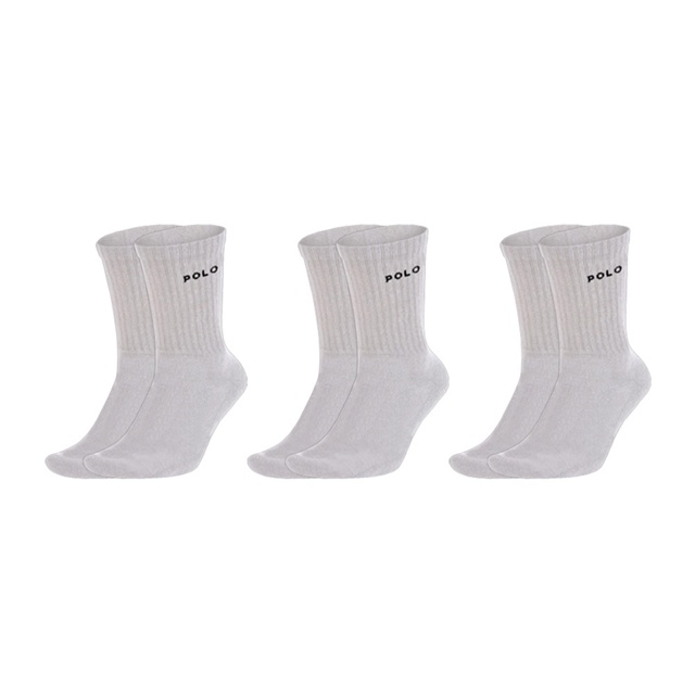 Kit 3 Meia Algodão Cano Médio Polo Star Branca