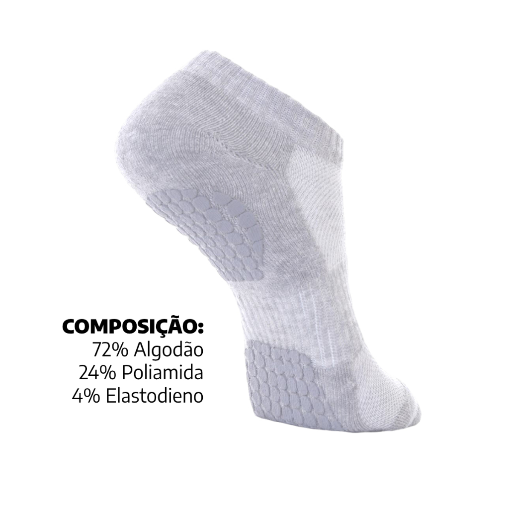 Kit 3 Meias Hidroginástica Adulto Unissex Sortida Meias Antiderrapantes Masculinas para atividades esportivas como Pilates Ioga. Treino funcional treino em academia entre outras atividades que necessite calçado antiderrapante de maneira confortável. As meias de pilates são para os praticantes de pilates e ioga, mesmo sendo utilizada na maioria das vezes como item de pilates, também é usada para demais praticas esportivas. Garantindo beleza, conforto, durabilidade, mobilidade e praticidade. Composição: 72% Algodão 24% Poliamida 4% Elastodieno Atoalhada, felpa de proteção na sola ou nas regiões de maior impacto. Anatômica, faixa de compressão no peito do pé para maior estabilidade. Tecido com ventilação, malha com textura especial, ajudando a regular a temperatura, maior conforto térmico. Antiderrapante, aplicação de estampa aderente no solado, prevenindo o deslizamento. A Compramais tem como missão desde 2013 proporcionar satisfação e qualidade para clientes em todo o Brasil. Trabalhamos com agilidade para garantir que seu pacote chegue com rapidez em suas mãos, no conforto do seu lar e sem precisar sair de casa! Temos um catálogo extenso de moda íntima que conta com itens femininos, masculinos e infantis. Ainda tem alguma dúvida? Nos faça uma pergunta! Compramais, paixão em moda íntima.