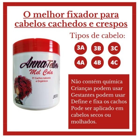 Kit 3 Mel cola Anna telles para cachos orgânicos e naturais 500g cada