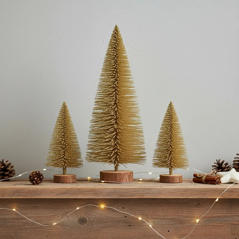 Kit 3 Mini Árvores Pinheiro de Natal Dourada Decorativas