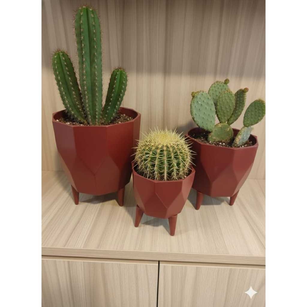 kit 3 Mini Vasos Plantas Decorativos Cachepot Facetado plástico com Pé