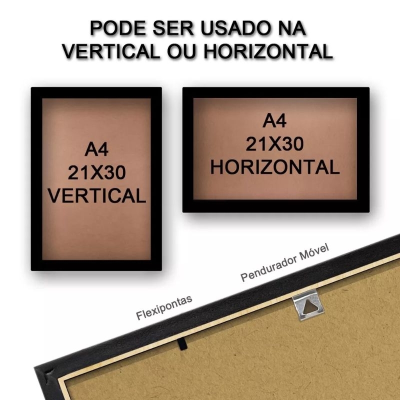 Kit 3 molduras Para quadros A430x21 Acompanha ( Fundo eucatex e Acetato)