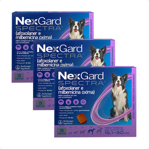 Kit 3 NexGard Spectra para Cães 15,1 a 30kg - 3 Tabletes
