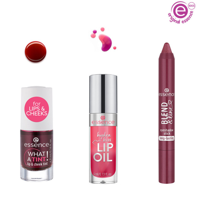Esse Kit contém 3 produtos. 1 - Lip Tint What a Tint! essence O Lip Tint What a Tint! essence vai ser o melhor aliado para quem gosta de praticidade e um look fresh. Ele pode ser usado nos lábios ou nas maçãs do rosto,entregando um ar natural e corado. Possui textura suave, não pegajosa,fácil de aplicar e tem longa duração. 2 - Óleo labial Hydra Kiss essence Óleo labial Hydra Kiss essence proporciona um acabamento de alto brilho, sem ser pegajoso. Possui ácido hialurônico, óleo de jojoba e vitamina E deixando os lábios super hidratados. Sua cor é suave e deixa um look super fresh! 3 - Sombra em bastão Blend & line essence A sombra em bastão Blend & line essence é a perfeita combinação entre praticidade, criatividade e acabamento incrível. O formato em bastão permite fácil aplicação, podendo ser usado como sombra ou delineador, oferecendo inúmeras possibilidades. Possui acabamento metálico para você arrasar na make! ainda é fácil de esfumar e possui longa duração.