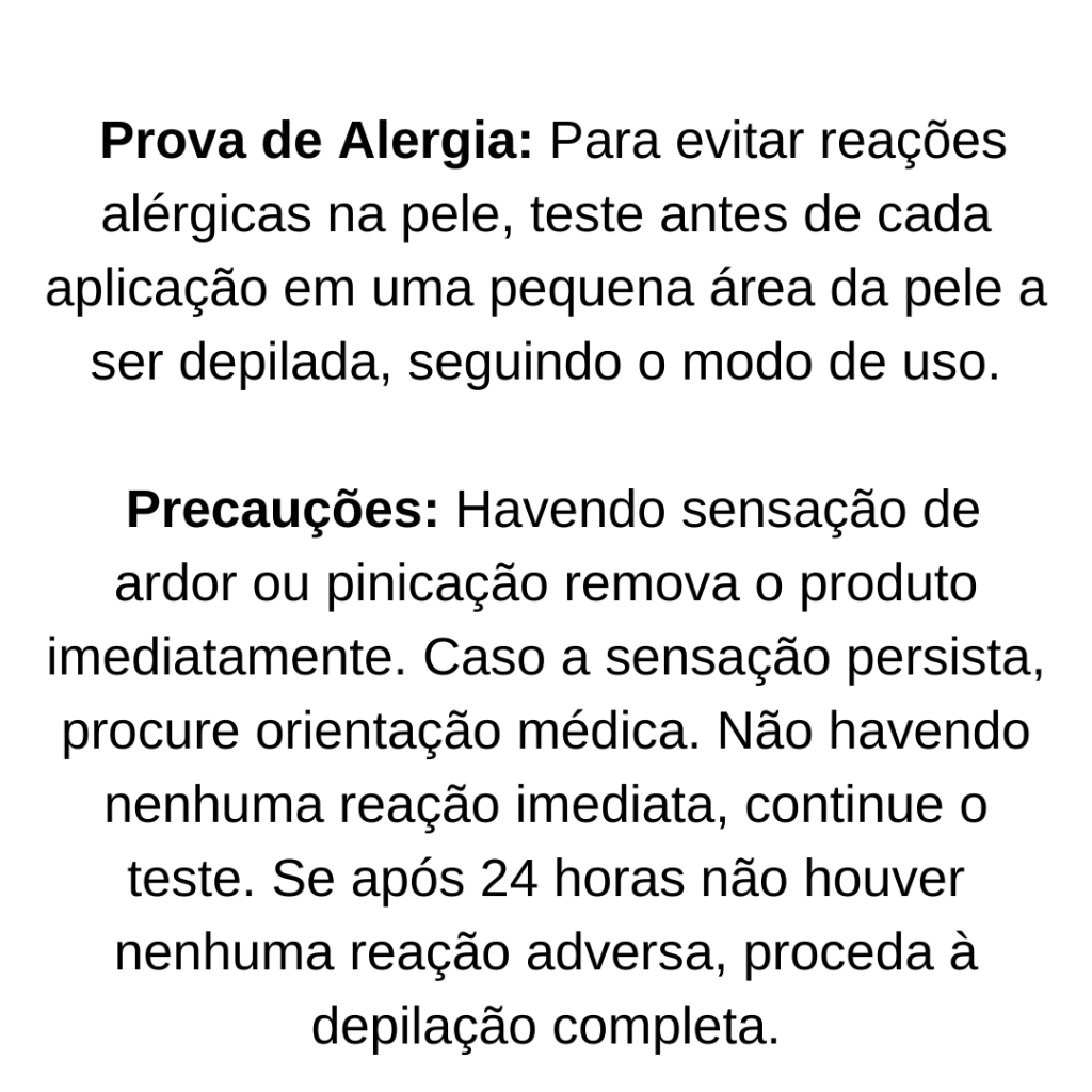 Avon Care - Nova fórmula para depilação. O Creme Depilatório Avon Care, desenvolvido por especialistas em pele, apresenta uma fórmula com fragrância exclusiva, que remove os pelos cuidadosamente. Contém nosso Complexo de Hidratação Prolongada, combinando ingredientes específicos que ajudam a manter a hidratação natural da pele. FÓRMULA 3 EM 1: • Remove os pelos de maneira rápida e eficaz. • Prolonga o efeito da depilação por 1 semana. • Pele com sensação macia e hidratada imediatamente após o uso. Teste de sensibilidade: Antes de usar o creme depilatório corporal, é importante realizar o teste de sensibilidade em uma pequena área da região a ser depilada, aplicando de acordo com o modo de uso. Se após 24 horas não houver nenhuma ocorrência adversa, você poderá realizar uma depilação com segurança.