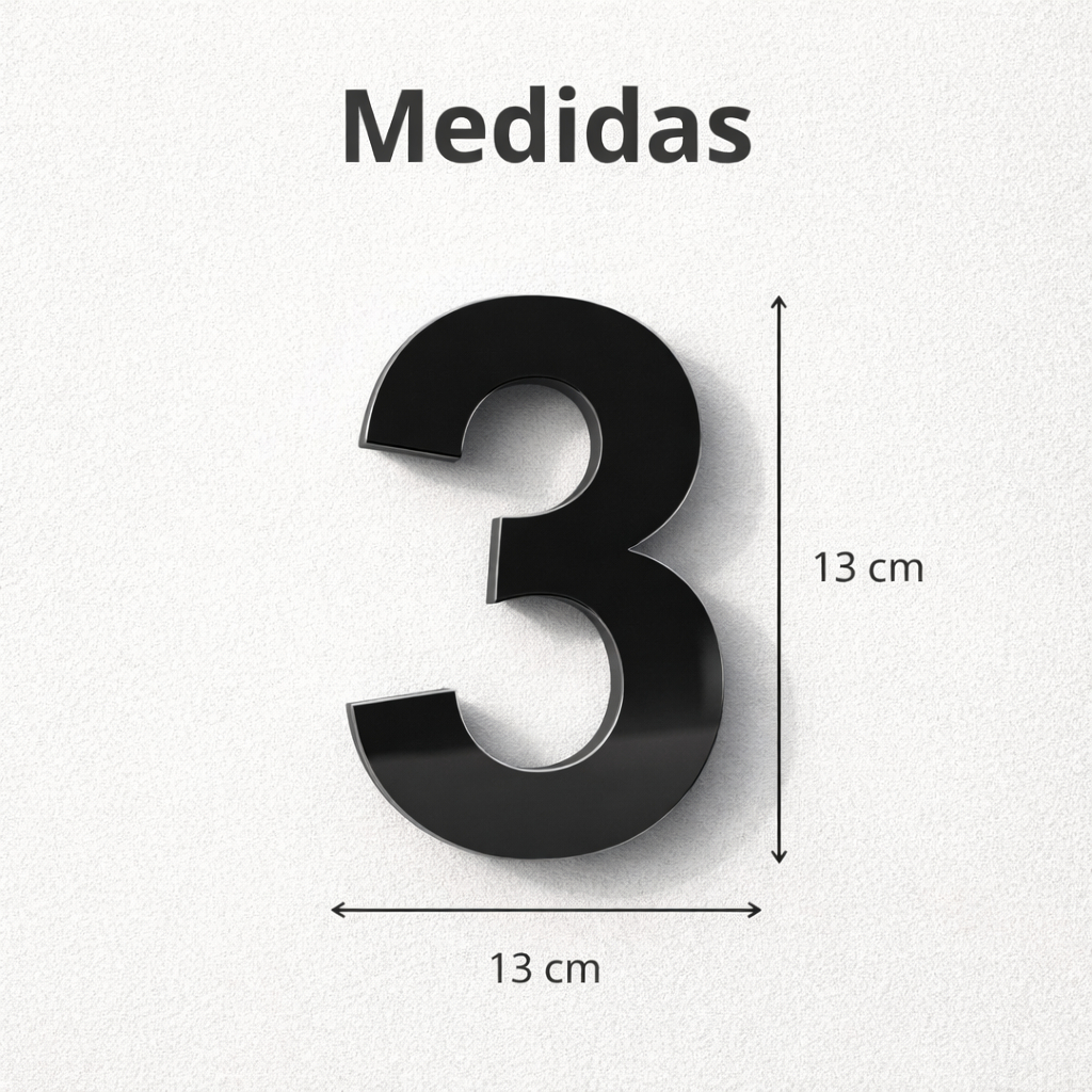 Kit 3 Números em Acrílico para Parede 13cm – Preto e Branco Moderno e Sofisticado Dê um toque moderno, elegante e profissional ao seu ambiente com este kit de 3 números em acrílico decorativos. Produzidos com acabamento de alta qualidade, eles garantem excelente visibilidade, resistência e um visual sofisticado para sua fachada ou identificação. 🏠✨ Disponíveis nas cores preto e branco, os números proporcionam um visual limpo e moderno, ideal para valorizar qualquer tipo de ambiente. ⭐ Diferenciais do Produto ✔ Kit com 3 números para composição de endereço ✔ Disponível nas cores preto e branco 🖤🤍 ✔ Acrílico de alta qualidade e durabilidade ✔ Design moderno e sofisticado ✔ Excelente visibilidade à distância 👁️ ✔ Acabamento liso e profissional ✔ Ideal para áreas internas e externas 📦 Ficha Técnica Material: Acrílico de alta qualidade Medidas: 13 cm (cada número) Cor: Preto e Branco Quantidade: Kit com 3 números Numeração disponível: 0 a 9 🔢 Acabamento: Liso e brilhante Conteúdo da embalagem: 3 números em acrílico 🛠️ Indicação de Uso Ideal para identificação residencial, numeração predial, fachadas comerciais, portas, portões, muros, escritórios e ambientes corporativos. ⚠️ Informações Importantes: Fixação por fita dupla face (não inclusa) 🧷 Aplicar em superfície limpa, seca e lisa para melhor fixação Produto indicado para uso interno e externo ⚠️⚠️IMPORTANTE⚠️⚠️ Mandar a numeração desejada no chat!! 🚚 Envio e Prazo 📦 Produto bem embalado para evitar danos no transport ⏱️ Envio conforme prazo informado na plataforma 💬 Atendimento via chat em caso de dúvidas