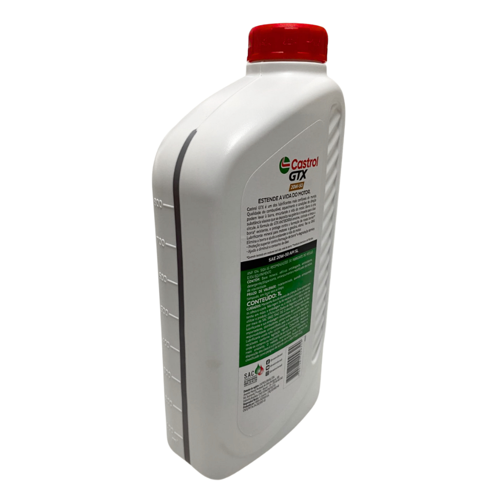 CASTROL GTX 20W-50. Este anuncio contem: 03 - Óleo Castrol Gtx 20w50 1 litro. - SAE 20W-50; - API SL. O Castrol GTX é um óleo de motor premium convencional que vem ajudando a prolongar a vida útil dos motores desde 1968. Sua fórmula dupla ação remove os resíduos e evita a formação de novos resíduos. O GTX OFERECE: - Proteção excepcional contra os resíduos que se acumulam no motor; - Proteção avançada contra degradação da viscosidade e decomposição térmica; - Óleos básicos de qualidade premium e aditivos antidesgaste para ajudar a prolongar a vida útil do seu motor; - Ajuda a minimizar o consumo de óleo. A nossa empresa comercializa apenas produtor originais de fabricantes certificado pelo ISO 9001. Dúvidas frequentes: Nós trabalhamos apenas com produtos novos e com garantia. Nossos produtos são de qualidade original, respeitando todas as regras do fabricante. Produto a pronta entrega. Seus produtos serão enviados em até 24 horas úteis. Sobre o produto: Além de ser responsável pela lubrificação, o óleo atua na prevenção do desgaste, da oxidação e da corrosão das peças do motor. Assim, o componente garante o bom desempenho do propulsor e evita prejuízos para o motorista. A lubrificação errada, no entanto, pode significar a redução da performance do automóvel, o aumento no consumo de combustível e até mesmo a fundição do motor. Uma lubrificação ineficiente pode ser causada por vários fatores, desde o modo de aplicação no motor até a utilização de lubrificantes que não seguem as especificações das montadoras do veículo Sobre nossa empresa: Estamos há mais de 30 anos no mercado de autopeças, buscando sempre a satisfação dos nossos clientes. Trabalhamos com as melhores marcas do ramo automotivo e aqui você encontrará as melhores peças para seu veículo, e contará com qualidade e o melhor atendimento. Nossos produtos são todos rigorosamente conferidos e embalados para que chegue até você da melhor maneira. Trabalhamos somente com peças novas, originais ou de marcas de primeira linha.