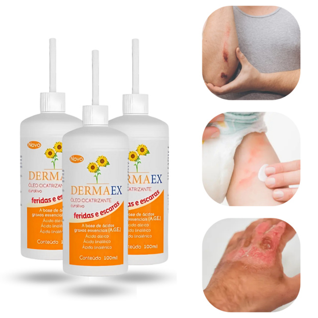 Kit 3 Óleos De Girassol Cicatrizante Dermatites Queimaduras 100ml Dermaex