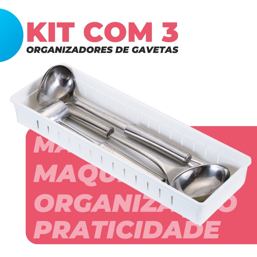 Kit 3 Organizador Gaveta Com Divisórias Cozinha Escritório Maquiagem Branco Dasplast