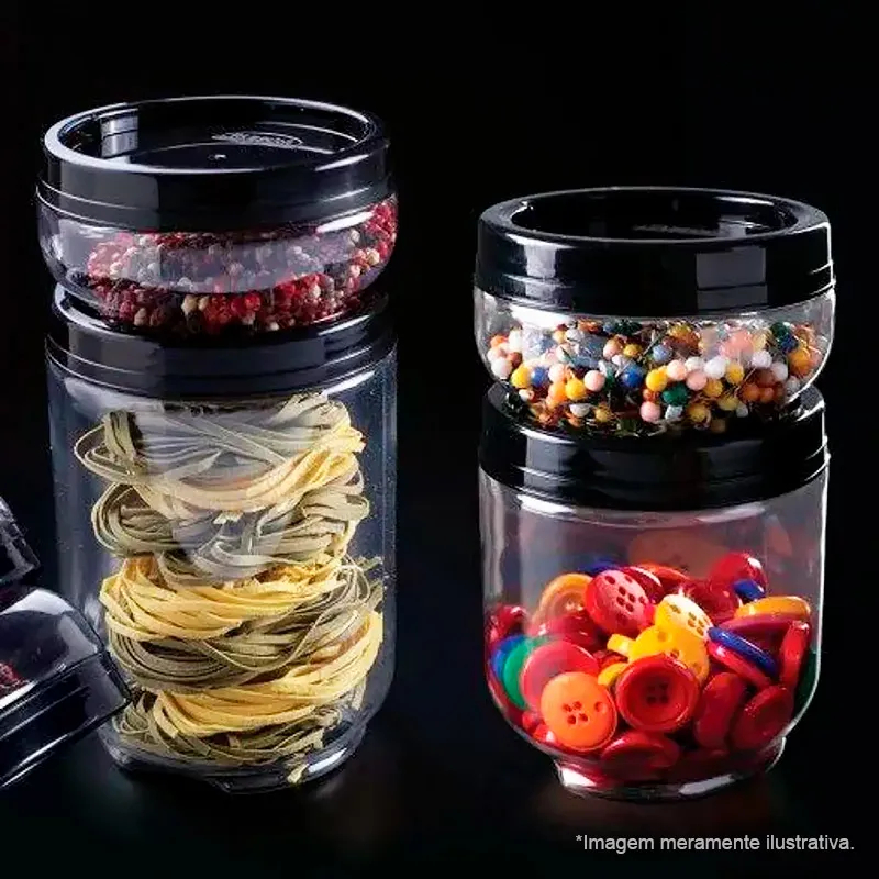 Kit 3 Organizadores Gire e Trave Plasútil – Empilhável, BPA Free, 155ml/155ml/380ml