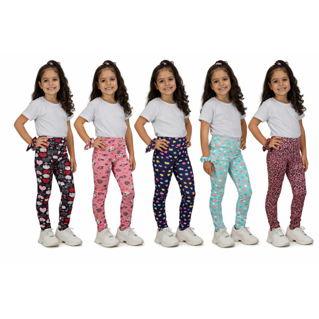 Kit contendo 3 ou 5 calças leggings, infantil ou Juvenil. Você escolhe no momento da compra. Tamanhos disponíveis: tamanho 2 a 16 Calças confeccionadas em Cotton de excelente qualidade, perfeita para a criança brincar e saiu e ir para a escola. As estampas são bem alegres enviamos cores e estampas variadas sem repetição. Composição: 96% algodão e 4% elastano Porduto disponível para envio imediato.