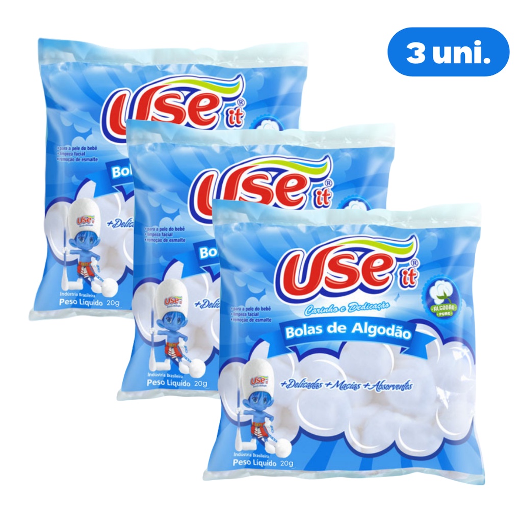 Kit 3 Pacotes Algodão Bola Branco Remoção de Esmalte Tradicional 20g Use it Para Pele do Bebê Limpeza 100% Algodão
