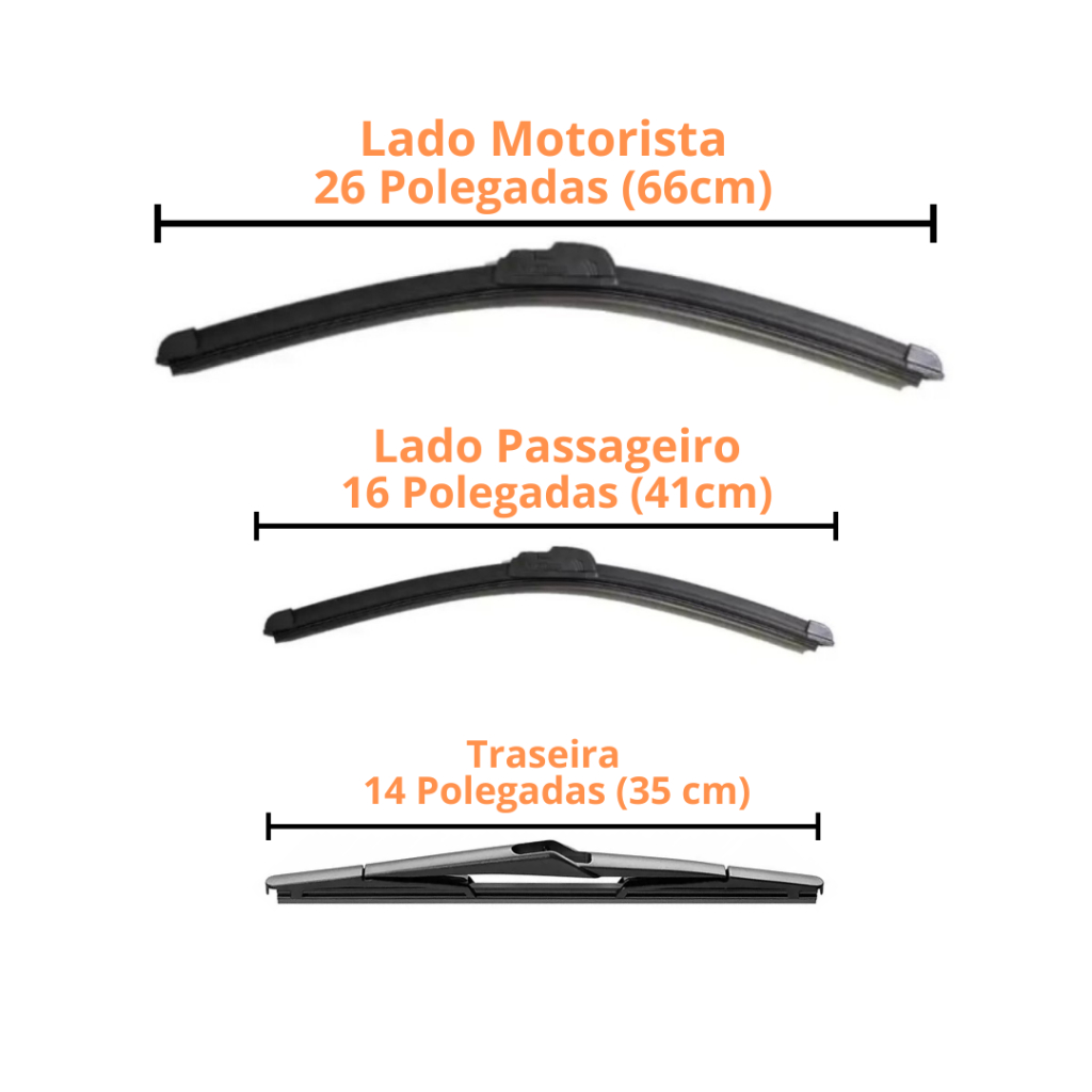 Kit 3 Palhetas Limpador De Parabrisa Dianteiro + traseiro Peugeot 206 207 2001 2002 2003 2004 A 2014