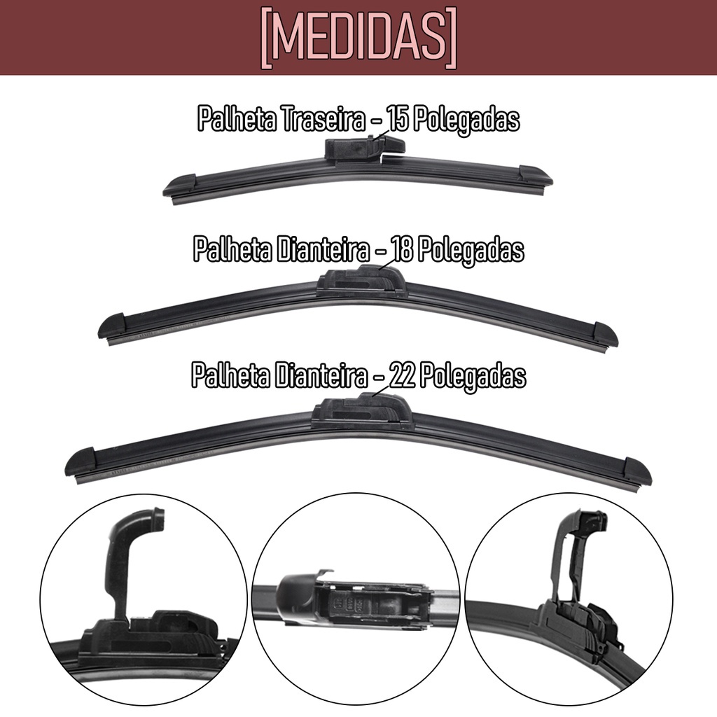 Kit 3 Palhetas Limpador Parabrisa Dianteiro e Traseiro Palio G3 2004/2014