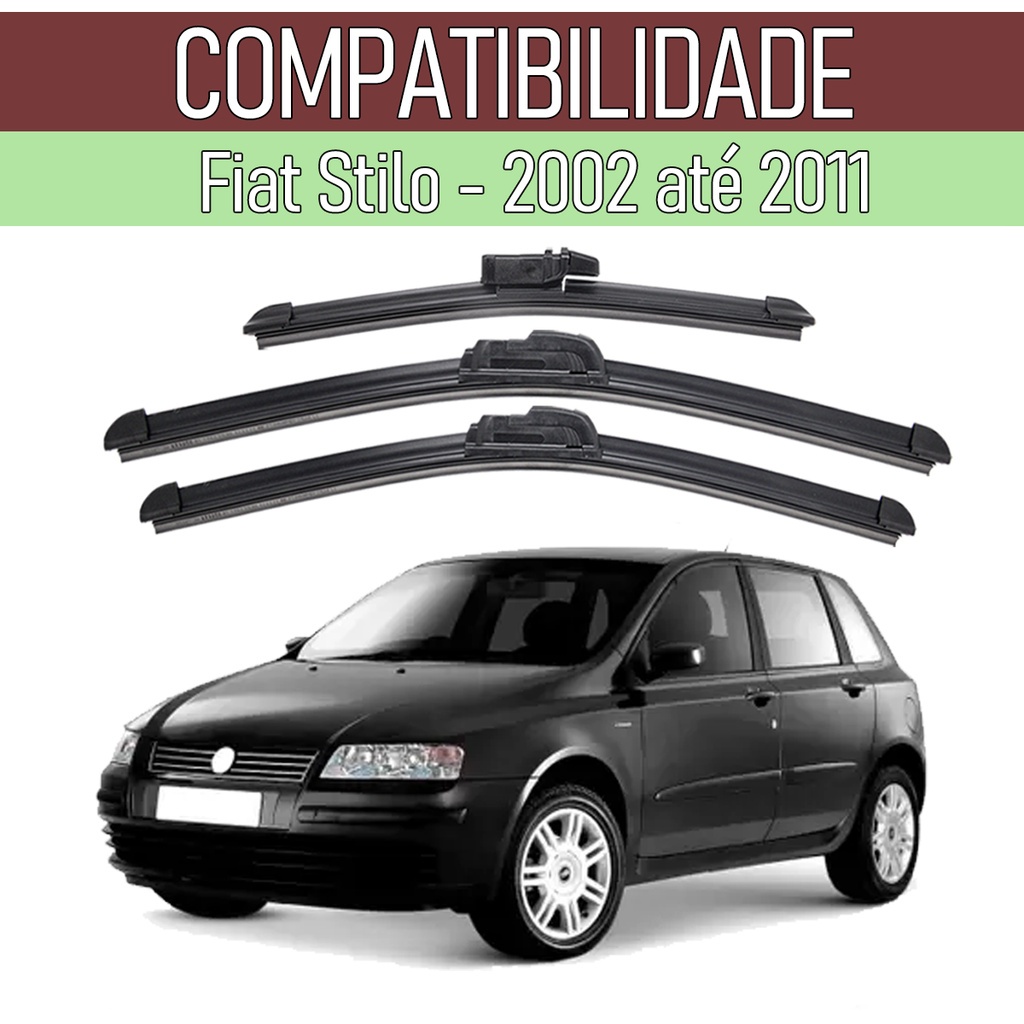 Kit 3 Palhetas Limpador Parabrisa Dianteiro + Traseiro Fiat Stilo 2002/2011
