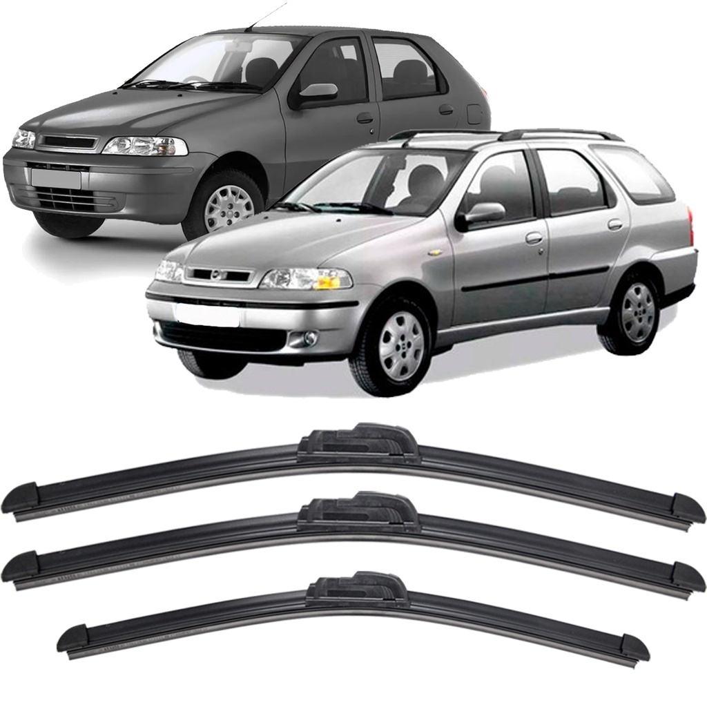 Kit 3 Palhetas Limpador Parabrisa Dianteiro + Traseiro Para Carro Fiat Palio G2 2001/2007