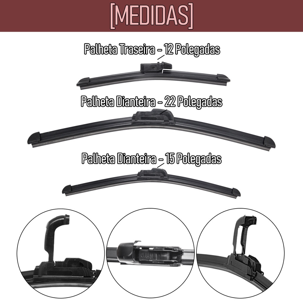 Kit 3 Palhetas Limpador Parabrisa Dianteiro + Traseiro - Para Carro Volkswagen Fox 2003 até 2009