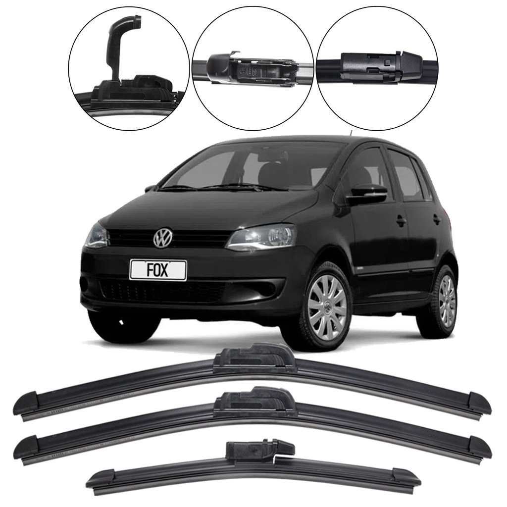 Kit 3 Palhetas Limpador Parabrisa Dianteiro + Traseiro VW Fox 2010 - 2012