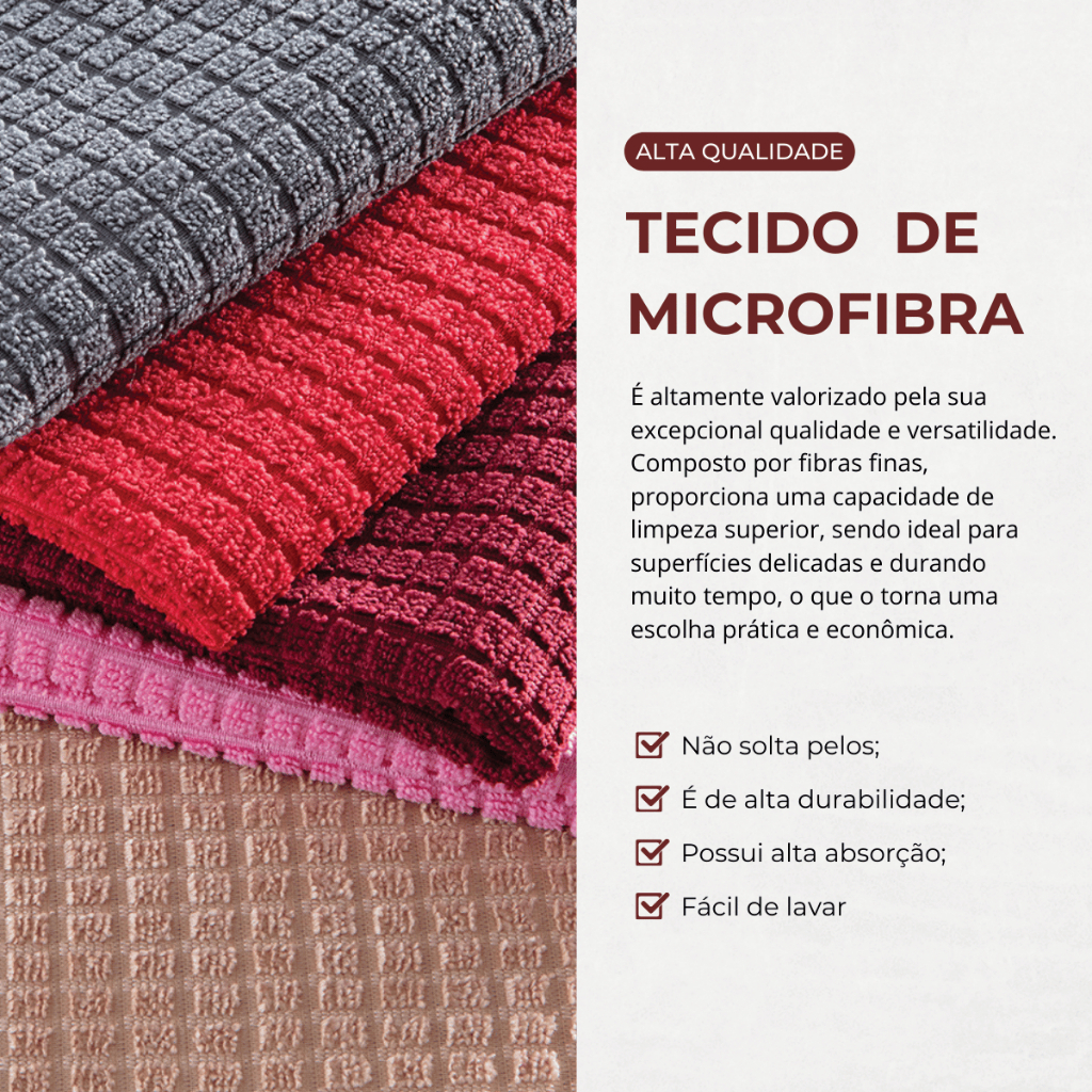 | Kit 10 Panos De Limpeza Microfibra alta absorção Multiuso | R$ 17,48 | 83% | 4.8/5 | 17 mil |