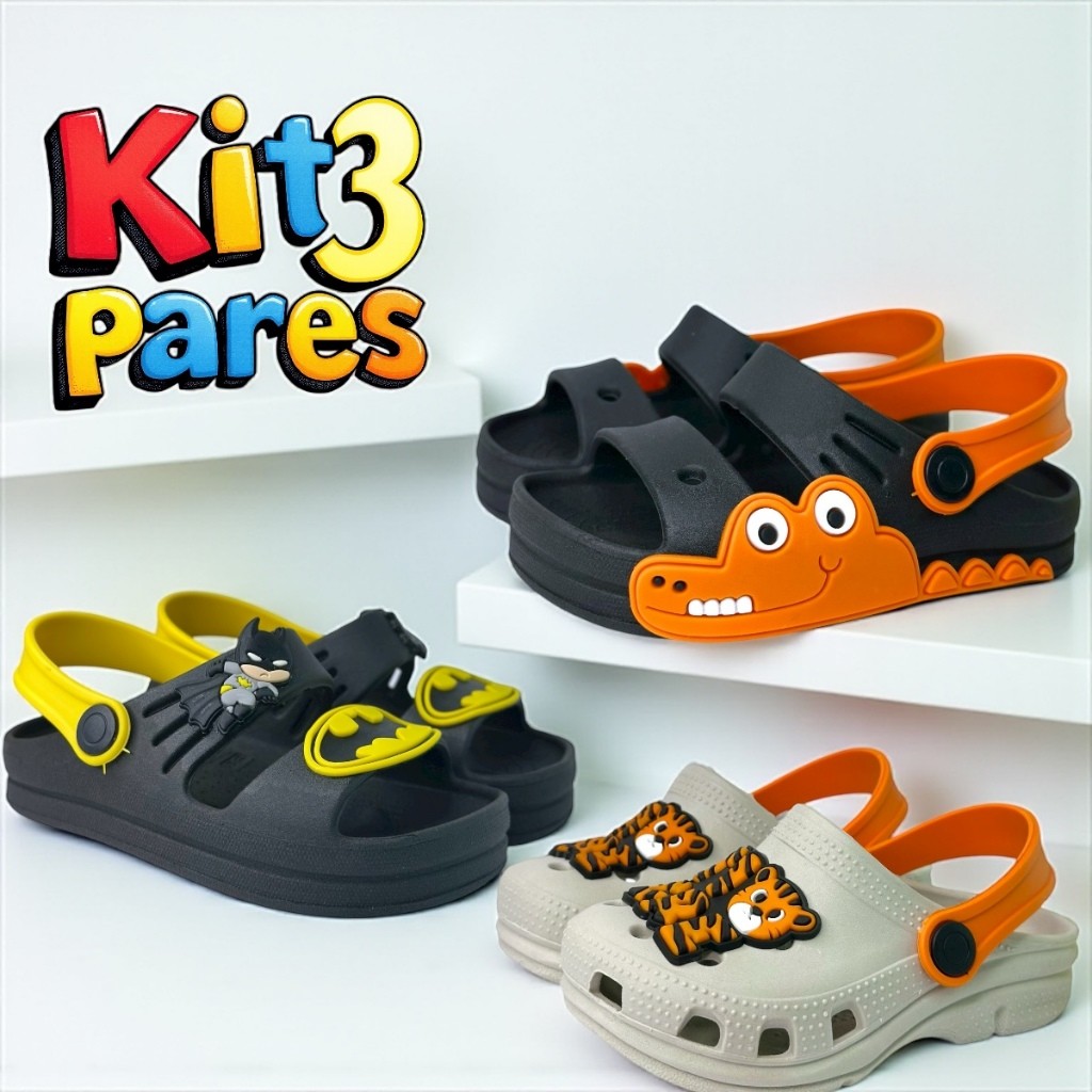 Kit 3 Pares de Babuche Personalizado Menino – Conforto, Estilo e Diversão! Deixe os pequenos ainda mais estilosos com nosso Kit com 3 pares de Babuche Personalizado para Meninos! Confortáveis, leves e com designs divertidos, esses calçados são perfeitos para o dia a dia, passeios e até brincadeiras ao ar livre. Características: 👟 Contém: 3 pares de babuche infantil 🎨 Modelos personalizados: Com temas infantis 📏 Tamanhos disponíveis: Do 20 ao 32 🧼 Fácil de limpar: Material resistente e lavável 💨 Ventilado: Furinhos na parte superior que garantem maior respiração dos pés 🔒 Tira traseira ajustável: Pode ser usada para firmar o pé ou virada para frente Ideal para o verão e dias quentes Versátil: pode ser usado dentro de casa, na escola, na praia ou parque Super leve: não incomoda nem cansa os pezinhos Opção econômica com 3 pares diferentes no mesmo kit!