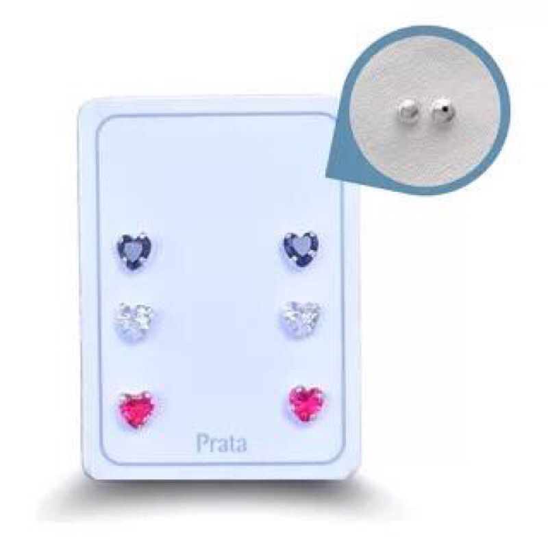 Kit 3 Pares Brinco Coração 4mm Prata 925 Infantil | Brinco Bebê Tarraxa Baby Antialérgico