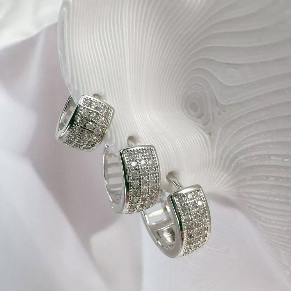 Kit 3 Pares Brinco Trio Com 3 Argolas Feminino Cravejada Zircônia