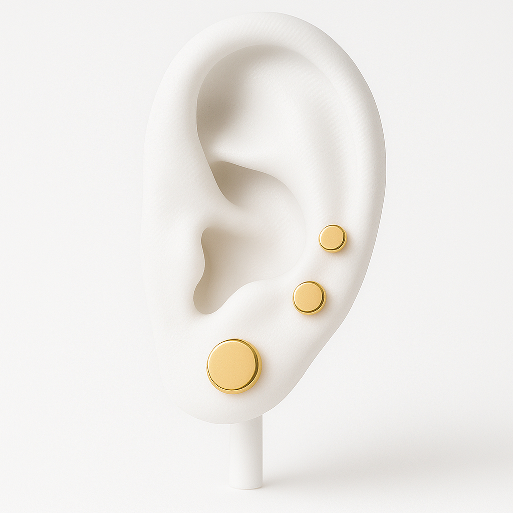 Kit 3 Pares de Brincos Ponto de Luz Redondo – Dourado & Prateado, Trio P/M/G, Minimalista, Conforto no Dia a Dia