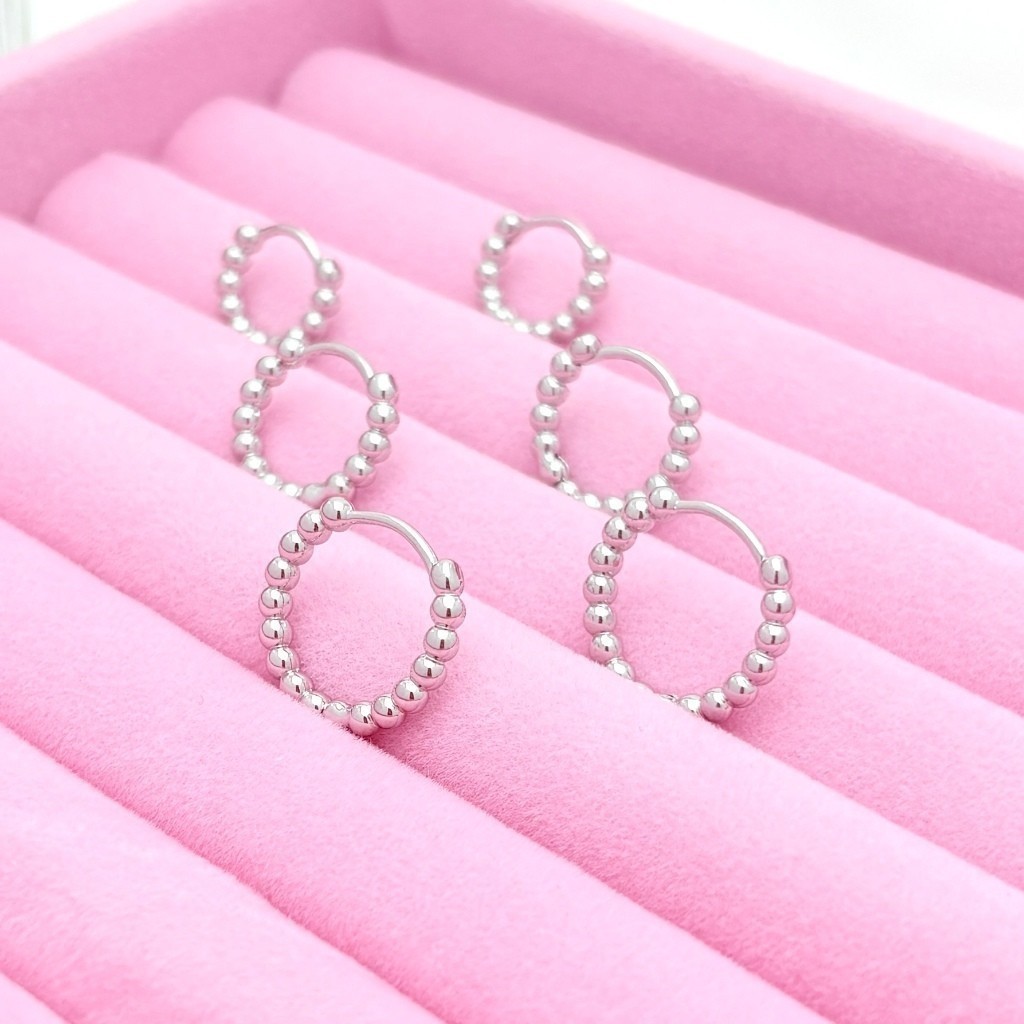 Kit 3 pares elegantes brincos de contas, banhados a prata 925 ou ouro 18k