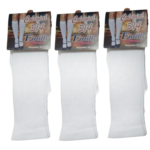 Kit 3 Pares Meia Escolar Colegial 3/4 Emilly Altura do Joelho para Menina 35 a 39