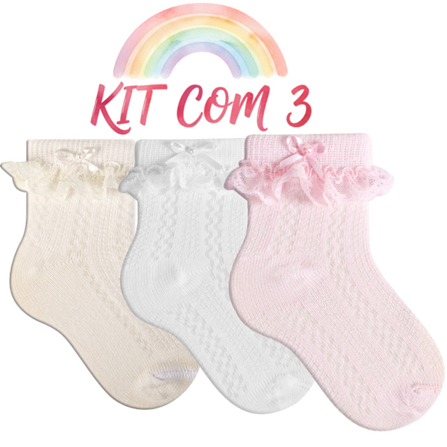 | Kit 3 Pares Meia Infantil Bebê Menina Meia De Festa Rendada Batizad... este produto | R$ 22,90 | 62% | 4.9/5 | 619 |
