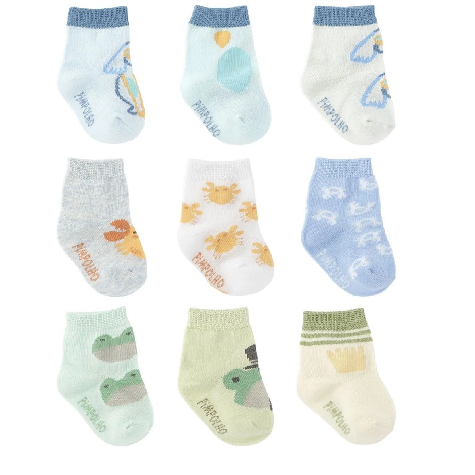 Kit 3 Pares Meia Pimpolho Colorida para Bebe 0 A 15 Infantil Menino Menina