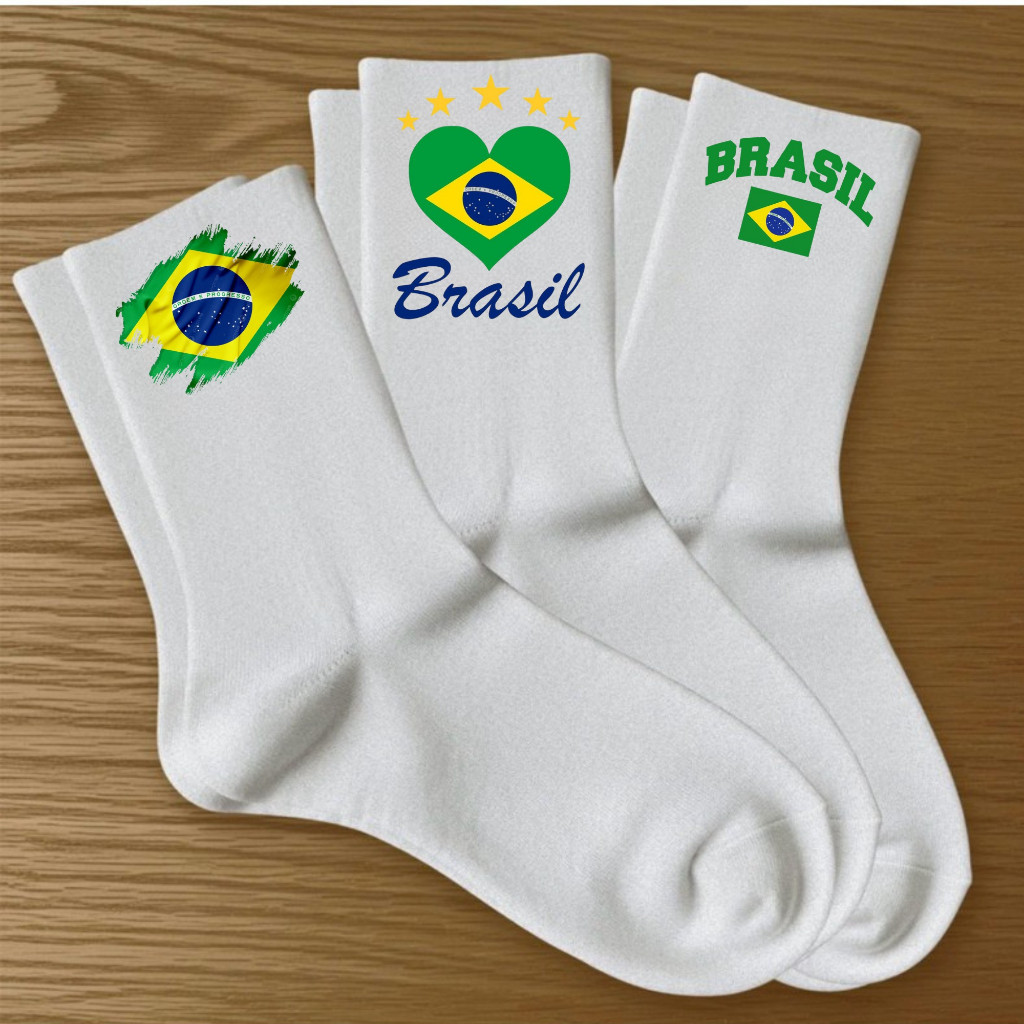 Kit 3 Pares Meias estampas Brasil Copa Meia personalizada tamanho unico serve do 33 ao 44