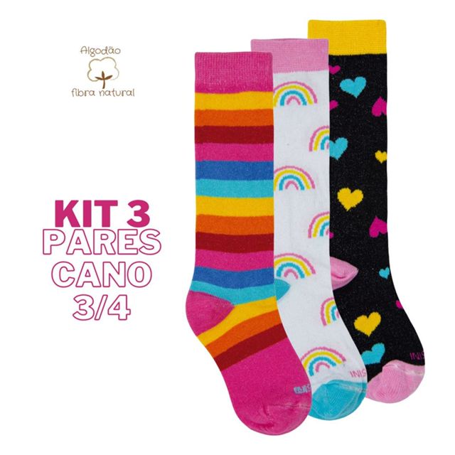 | Kit 3 Pares Meias Infantil Cano Longo 3/4 Colorida Galocha Escola Ó... este produto | R$ 56,87 | — | 4.9/5 | 165 |