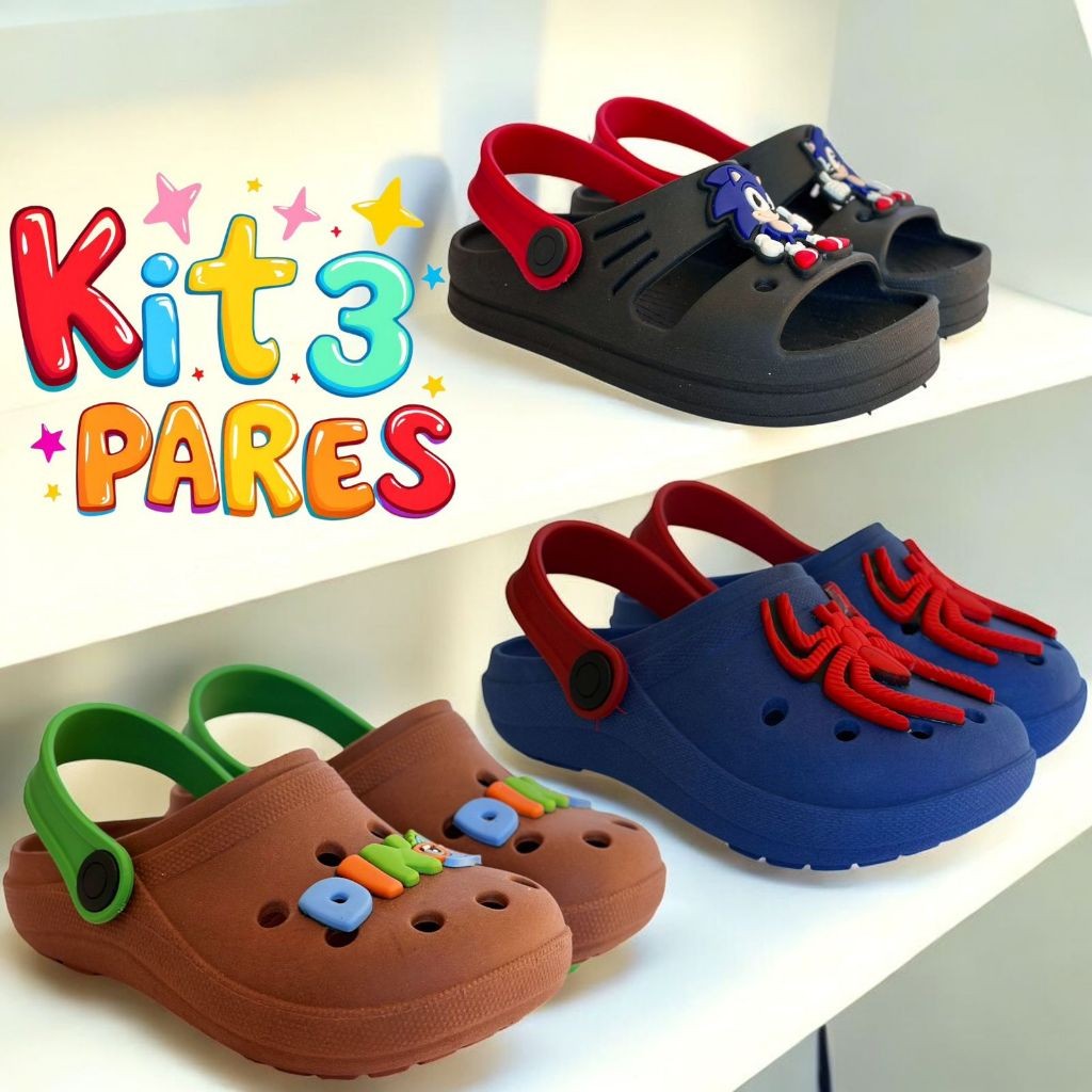 KIT 3 PARES SANDALIA BABUCHE GALOCHA PAPETE INFANTIL PARA MENINOS