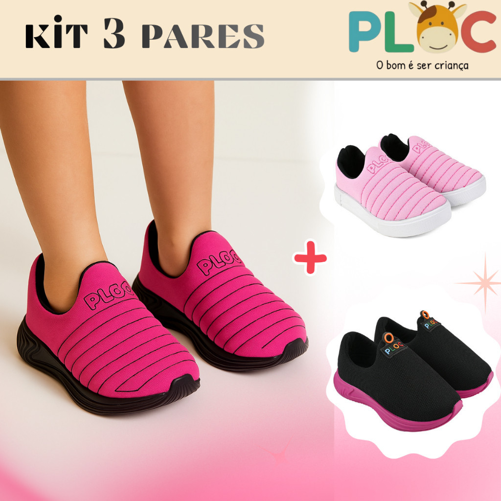| Kit 3 pares Tênis Infantil Ploc - Colors Iate e Play Anatômico Menina este produto | R$ 79,90 | 33% | 4.9/5 | — |